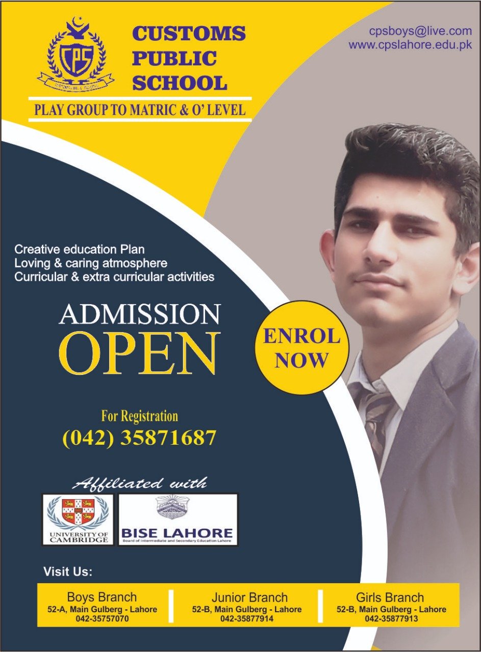 Customs Public School (CPS), established in 1982, is one of Lahore’s most prestigious educational institutions. Founded through the efforts of Pakistan Customs and Central Excise Lahore, CPS provides top-tier education that meets both national and international standards, including Cambridge regulated GCE programs.